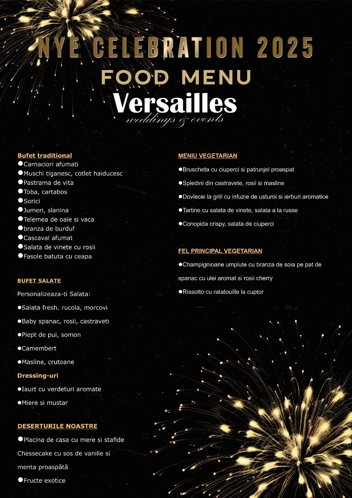 Evenimentul include meniu mâncare la bufet, vin spumant la 24.00 și o PETRECERE DE NEUITAT 🥂💃🎆