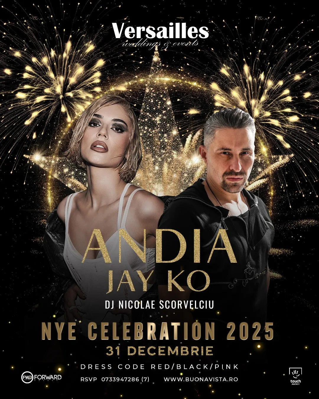 Revelionul 2025 la Versailles Weddings & Events Sibiu se anunță a fi un show inedit, cu muzică live și distracție garantată! Vor fi prezenți artiști cunoscuti precum Andia, Jay Ko și DJ Nicolae Scorvelciu, care vor întreține atmosfera pentru o trecere spectaculoasă în noul an.
